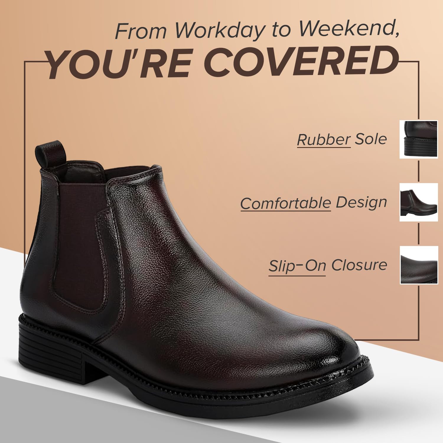 - CRAFTED COMFORT: No break in period with these soft mens chelsea boots PU ( Polyurethane ). Our padded latex footbed provides added cushion and all-day comfort with maximum rebound technology. Whether you’re going to work, heading out for a night on the town, or running errands, you’ll love the comfortable feel that our fashion-forward boots provide.